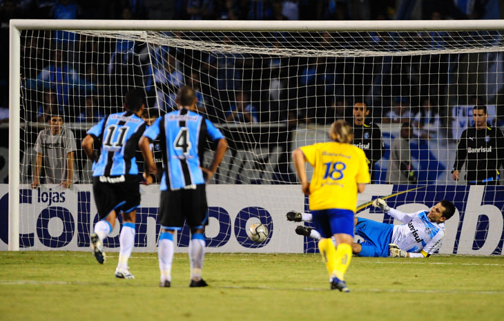 Tinha que ser o Áureo-cerúleo Pelotas a roubar a invencibilidade gremista dentro do Monumental. Tantos outros “grandes” passaram por ali e NADA puderam fazer nos últimos dois anos. Mas o time da cidade das bolas usou do veneno gremista pra derrubar o Imortal. Foi copero y peleador dentro do Olímpico. Marcou como pode, lá em cima, na pressão durante os 30 primeiros minutos, mesmo tendo veteranos e gorditos em seu scratch. Time de três zagueiros, de jogada pelas pontas, de insistência. Time que não saiu da briga mesmo depois de tomar uma facada no bucho no meio do rebosteio.