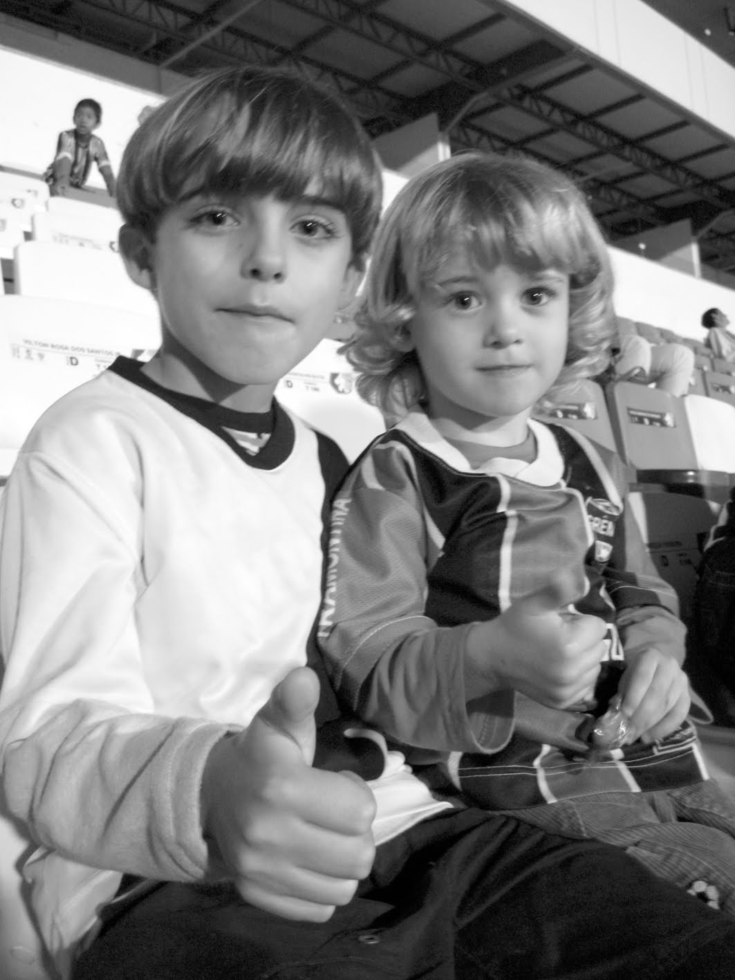 A Copa da Hora poderia ser legal. A ideia era boa. Mas a torcida não encampou e os times muito menos. Legal foi ver duas torcidas sentadas no mesmo setor do estádio sem conflitos, como os dois guris aí da foto. Irmãos, um gremista (Jonas), outro vascaíno (Jonatas), como os dois que estavam em campo.