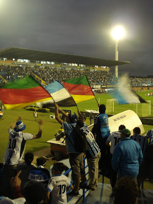 Só vi o segundo e o terceiro gols do Tricolor. No primeiro tava brigando com o “puliça” que ficou brabo porque dei uns chacoalhão no alambrado – de mierda aquele alambradis, tchê. Alambrado com rodinha, movediço. Já viu ilso?